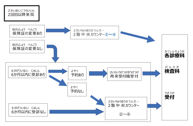 ※初めて来院された方は、まずは総合案内に来て聞いてください。