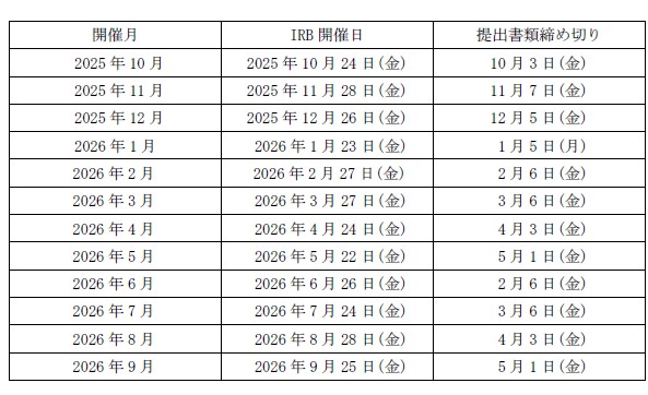 - 原則、申請書類の提出締切日は毎月第1金曜日17:00迄。