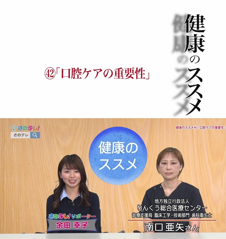 以降の放送内容について:当センター 医師が泉佐野市行政情報番組「さのテレ!」に出演します。