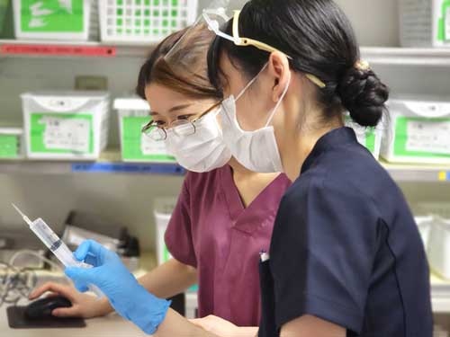 また、来院された患者さまだけでなく、待機される家族さまへの配慮、ご自宅からの電話相談(年間5000件)、帰宅される際の健康管理などにも常に看護の専門家として支援をしています。私たちは受診されたすべての患者さまが安全に治療を受けられるよう、来院された順ではなく、状態に応じ医学的に急ぐ順で診察を調整しています。現在はスタッフ全員がその判断(トリアージ)ができる看護師として実践しています。