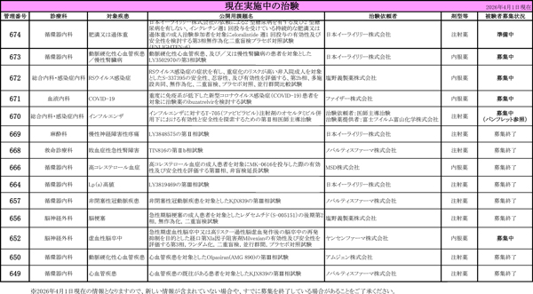 - 現在実施中の治験